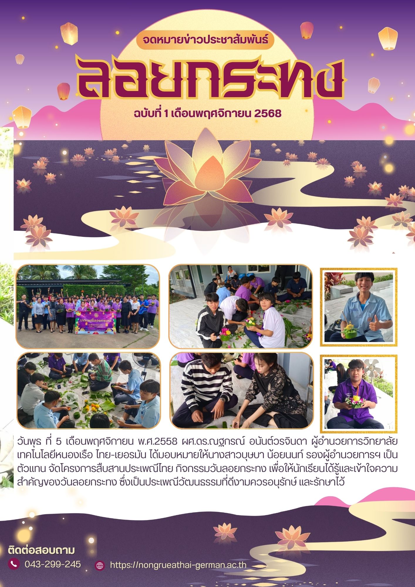 โครงการสืบสานประเพณ๊ไทย กิจกรรมวันลอยกระทง
